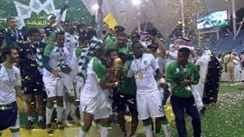 جريدة الجزيرة وكالات الأنباء تفاعلت مع لقب الراقي: رويترز: الأهلي يقدم كرة جميلة.. الألمانية: الأهلي يثأر من الهلال أشادت وكالات الأنباء العالمية بالفوز الأهلاوي في تغطيتها للمباراة النهائية، وعنونت وكالة «رويترز»: الأهلي يواصل عروضه الجميلة ويتوج بلقب كأس ولي عهد السعودية، وأشارت الى أن المحترف السوري عمر السومة سجل للأهلي من أول لمسة تقريباً، وكتب مراسلها عائض القاضي: «وقبل التصدي للركلة شوهد تيسير الجاسم قائد الأهلي وهو يهمس بكلمات في أذن المسيليم». وأكدت أن الفريق الأهلاوي يقدم أكثر كرة ممتعة في السعودية هذا الموسم تحت قيادة المدرب السويسري سبستيان جروس. في المقابل ذكرت وكالة الأنباء الألمانية أن الأهلي ثأر لخسارته اللقب من أمام الهلال في أعوام 2003 و 2006 و 2010 ، وكتبت تحت عنوان: «الأهلي بطلاً لكأس ولي العهد للمرة السادسة في تاريخه» أن الشوط الأول للمباراة ظهر متوسط المستوى، ولكن الحال تغير في الشوط الثاني حيث الأهداف وتعدد الفرص المتاحة للتسجيل. ونشرت تصريحات عديدة للأهلاويين بدءاً برئيس هيئة أعضاء الشرف الأمير تركي محمد العبدالله، ورئيس النادي الأمير فهد بن خالد، والمشرف على الفريق الأمير فيصل بن خالد العبدالله، ومدير عام الفريق باسم أبو داوود، واللاعبين تيسير الجاسم ومحمد عبدالشافي والحارس ياسر المسيليم. ولم تذهب وكالة الأنباء الفرنسية بعيداً عن الوكالتين السابقتين في تغطيتها للحدث. صحيفة الوطن الكأس يعيد الابتسامة للرمز.. ونجله وجه السعد جدة: عبدالرحمن زيد أصر الرئيس الفخري للنادي الأهلي الأمير خالد بن عبدالله على استقبال الفريق الأول لكرة القدم بالنادي في صالة الطيران الخاص بمطار الملك عبدالعزيز الدولي بجدة، رغم وصوله في وقت متأخر من فجر أمس، وحرص على تهنئة جميع اللاعبين والأجهزة الفنية والإدارية والطبية وإدارة النادي. وشكر الأمير خالد الجميع على الجهد الذي بذلوه طوال مشوارهم في بطولة كأس ولي العهد حتى وصولهم إلى المباراة النهائية وتحقيقهم اللقب، مطالبا اللاعبين بطي صفحة البطولة، والتركيز على الاستحقاقات المحلية والخارجية المقبلة، في مقدمتها دوري عبداللطيف جميل الذي يحتل فيه الفريق المركز الثاني، ومسابقة دوري أبطال آسيا التي سيخوص فيها مباراة الملحق أمام القادسية الكويتي بعد غد، مجددا ثقته في إمكانات اللاعبين وقدرتهم على الاستمرار. وكانت بعثة الفريق قوبلت باستقبال جماهيري حافل لدى وصولها إلى جدة، وردد الجمهور الأهازيج الخاصة بالنادي، إضافة إلى وجود كبير من عدد من هيئة أعضاء الشرف في النادي ومندوبي وسائل الإعلام المختلفة، بما فيها القنوات الفضائية والإذاعات والصحف ووسائل الإعلام الجديد. في المقابل، ظهر عضو الشرف البارز الأمير فيصل بن خالد بن عبدالله الذي يعمل في الخفاء من أجل خدمة الأهلي في جميع الاتجاهات محمولا على الأعناق، تقديرا لدوره الكبير وتحمله الأعباء، في ظل غياب رئيس النادي الأمير فهد بن خالد لوجوده مع ابنه خارج المملكة. وظل الأمير فيصل قريبا من جميع اللاعبين، لدعمهم وتحفيزهم لتقديم كل ما لديهم، بعيدا عن التوتر والقلق، ولإسعاد جماهير القلعة، وهو ما نجح في تحقيقه. وما أن أطلق الحكم صافرته حتى وضحت الفرحة الكبيرة على وجهه معانقا اللاعبين والجماهير التي حضرت ورددت عليه مقولة "وجه السعد للأهلي". صحيفة الوطن رئيس وأعضاء شرف الأهلي: موسمنا أخضر جدة: عبدالرحمن زيد غمرت السعادة كل أعضاء هيئة الشرف بالنادي الأهلي بمناسبة تحقيق الفريق الأول لكرة القدم بالنادي كأس ولي العهد، عقب فوزه على الهلال في المباراة النهائية للمسابقة أول من أمس 2 /1، وبدا التفاؤل كبيرا بموسم أخضر، يحصد فيه قلعة الكؤوس مزيدا من الألقاب. وقدم رئيس هيئة أعضاء الشرف النادي الأهلي الأمير تركي بن محمد العبدالله الفيصل التهنئة للرئيس الفخري للنادي الأمير خالد بن عبدالله وجميع أعضاء الشرف وإدارة النادي وجماهير الأهلي الوفية. وقال الأمير تركي بن محمد العبدالل