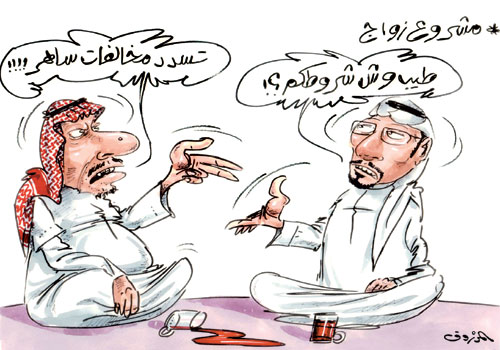 أبقى عزوبي طول عمري أفضل من تنفيذ هذا الشرط أعطونا شروط زواج معقولة ومقبولة ومقدور عليها وعلى سبيل المثال: إقامة حفل الزواج في فندق خمس نجوم وشهر عسل في جزر المالديف ولاندكروزر لوالد العروس وسيارتين كامري موديل 2011 لأشقاء العروس وألف سهم سابك لوالدة العروس مع طاقم ألماس نادر أما تسديد مخالفات ساهر بصراحة شرط صعب وإذا لم تتنازلوا عنه أكيد بنتكم بتكون عانس من ضمن العوانس |