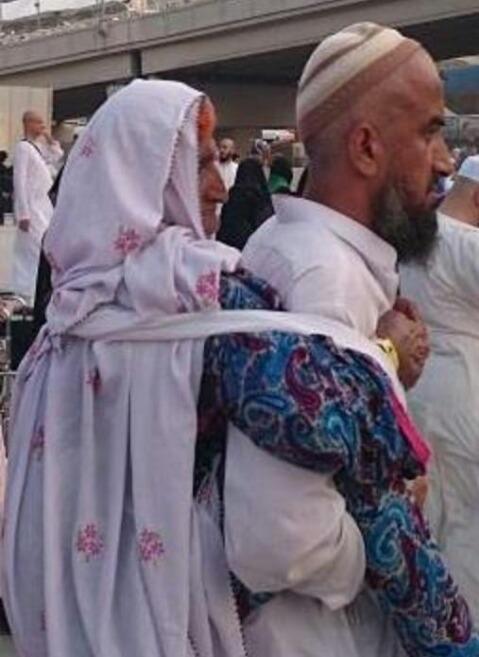 #صورة مؤثرة لحاج #باكستاني يحمل والدته المسنة (100عام) على ظهره بالقرب من الجمرات في مشعر #منى