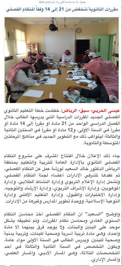 "التربية": مقررات الثانوية تنخفض من 21 إلى 14 وفقاً للنظام الفصلي. (سبق)