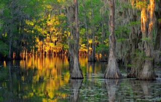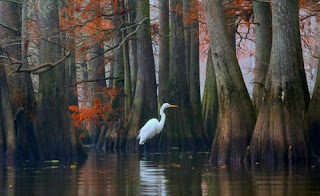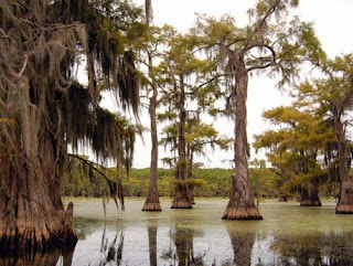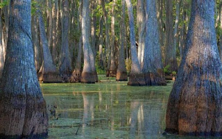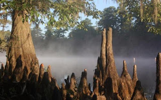 اشجار السرو في هذه البحيرة تنمو في الماء مباشرة مما يعطيها شكلا مميزا ونموا سريعا حيث تساعد هذه الاشجار على منع انجراف التربة الذي تسببه الاعاصير والامطار.