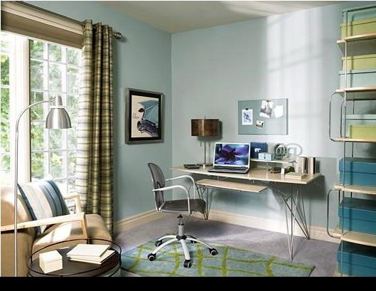 لاعطاء الجدية في غرفة المكتب أو الدراسة... تستخدم درجات هادئة بظلال رمادية ولمسات أنيقة وبسيطة بشكل مدروس وغير مغالى فيه
