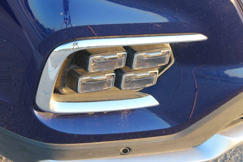 الواجهة الأمامية تتميز بخطوطها العريضة فالشبك الأمامي المطلي بالكروم والذي يحمل اسم الشركة بحروف كبيرة ويحتوي على الكاميرا الأمامية ، ويتوسط الأنوار الجانبية المسحوبة منه إلى الرفرف الجانبي مع إضاءة LED نهارية ، أسفلها شمعات أنوار الضباب بتصميم خلايا رباعية مدمجة بالمصد الأمامي المطلي بلون السيارة مع حساسات التوقف بالإضافة إلى مشتت الهواء السفلي للسيارة .